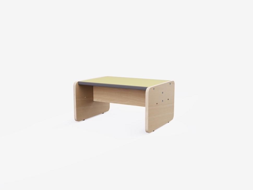 Скамейка изготовлена из натуральной березовой фанеры и ламинированной плиты, ей поверхность устойчива к влажной уборке и моющим средствам, что гарантирует лёгкий уход и поддержание гигиены в детском саду.
