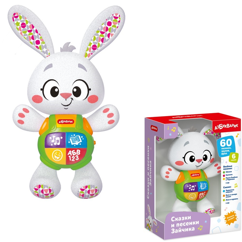 - 60 песенок, звуков, фраз, 6 сказок;