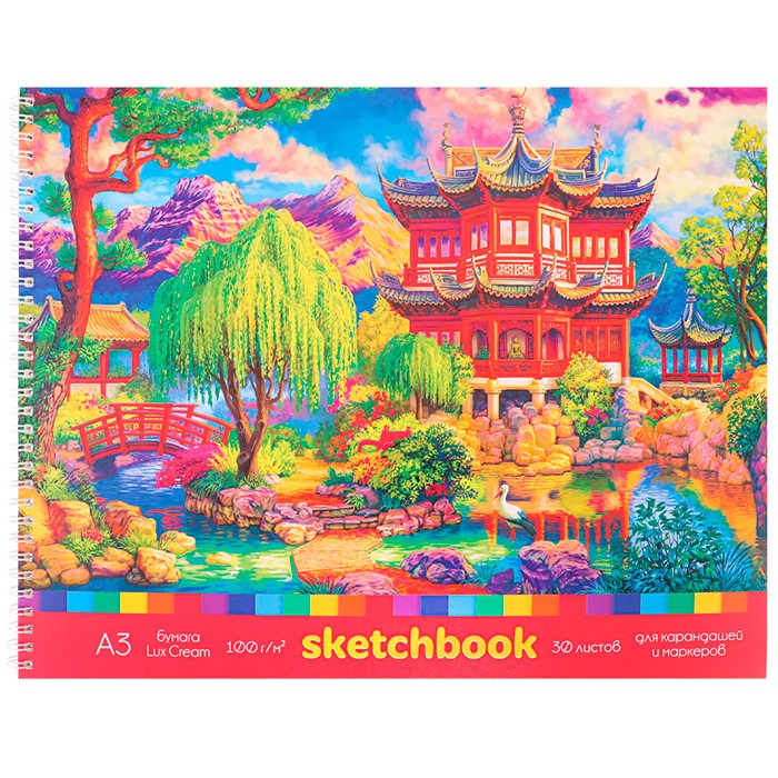 Скетчбук отличается удобным форматом, ярким дизайном, плотными листами.