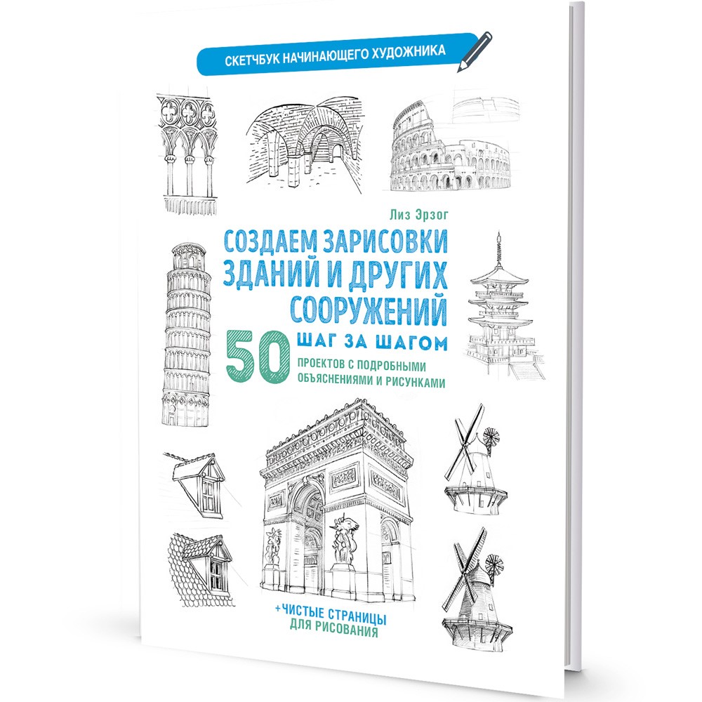 Скетчбук начинающего художника. Создаем зарисовки зданий (белая). Автор Лиз Эрзог 978-5-00141-695-1