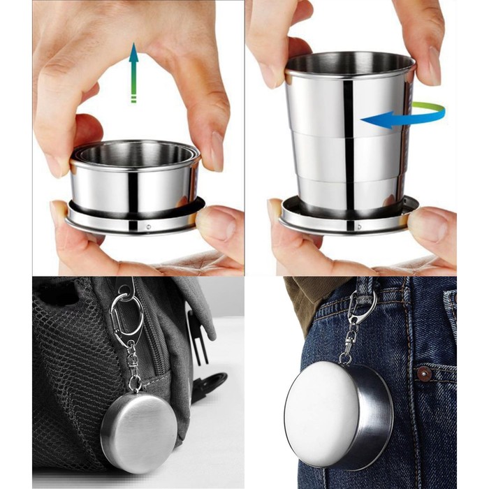 Стакан складной многоразовый объемом 150 мл, изготовлен из высокого качества 304 нержавеющей стали. Универсальный вариант для туристических походов, путешествий, рыбалки, охоты или выездов на природу. Он не только красиво смотрится, но и обеспечивает долгий срок службы изделия. Легко моется и подходит для повседневного использования. Отлично заменит стеклянные рюмки и бокалы, смотрится эффектно и стильно. Стакан, удобно помещается в руке и имеет оптимальный и вместительный объем 150 мл.