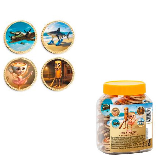 СЛАДКИЕ МОНЕТЫ из глазури BRAINROT цена за 1 шт (100 шт в упак) КТ95243