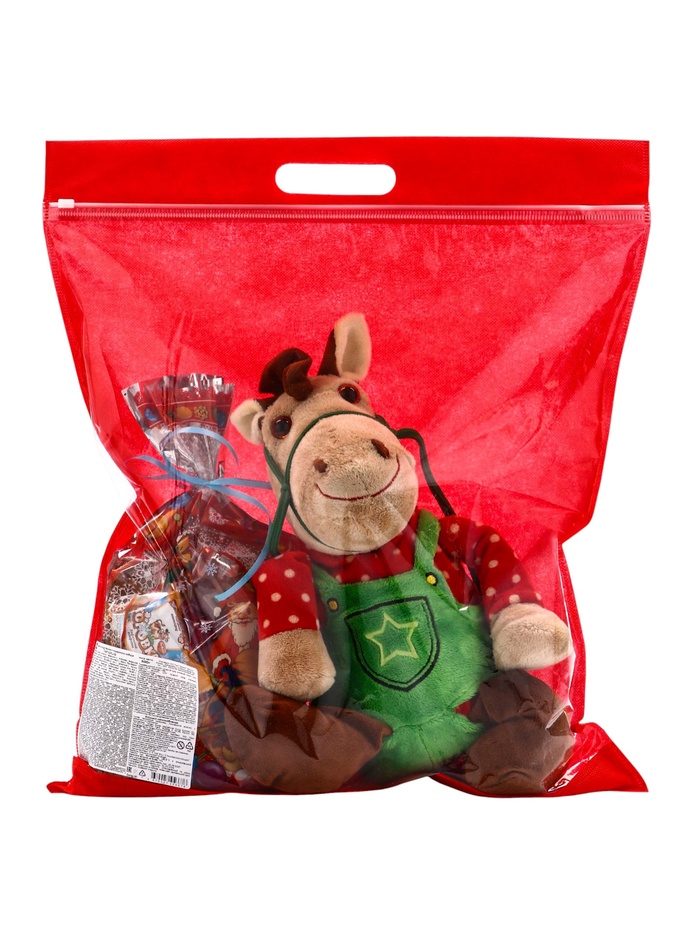 - Тканевый мешок с актуальным дизайном: Упаковка оформлена в стилистике символа 2026 года. После использования мешок можно применять для хранения игрушек или как элемент новогоднего декора.