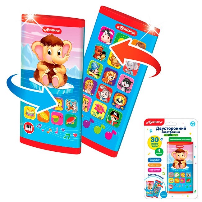 Смартфончик муз.Мамонтенок и мультяшки двусторонний 4680019285702