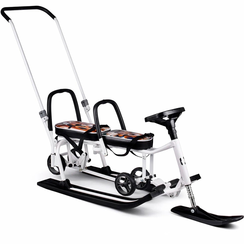 Снегокат 507 высокий SNOWKAT TWINS BABY Wheel для двоих, с 2 склад спинк.П-обр толкат. колёса Собачки