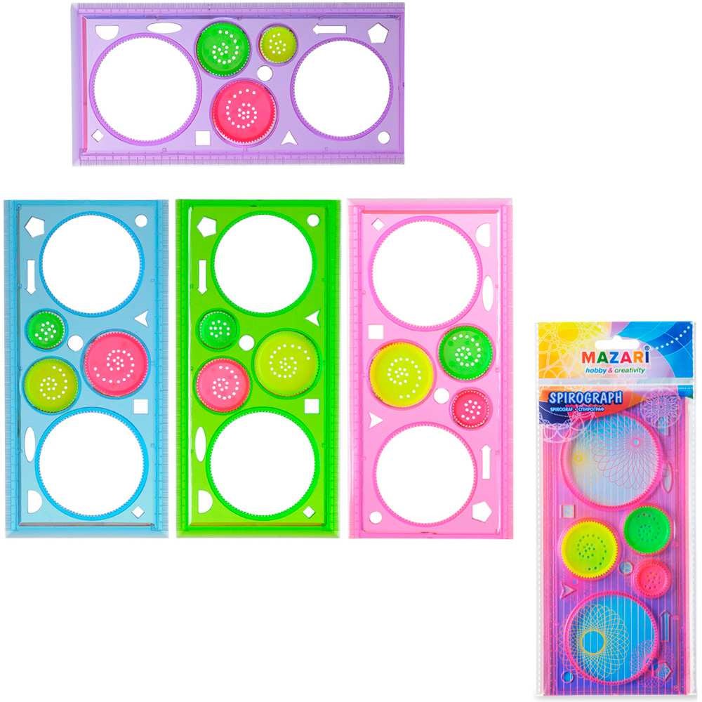 Спирограф, в комплекте: линейка-калейдоскоп 20 см, 3 круглых вкладыша разного размера M-5569