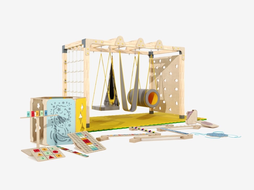 Комплект спортивного игрового оборудования для детей с нарушениями обработки сенсорной информации от органов чувств (нарушениями сенсомоторной интеграции). Занятия с комплексом помогают исправлять дисфункции проприоцептивной, вестибулярной и тактильной чувствительности у детей. Подходит как для работы коррекционных педагогов и реабилитологов, так и для общего физического развития детей.
