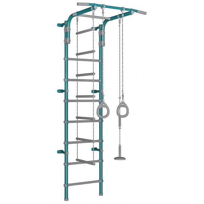 Спорткомплекс "Pastel 2" бирюз-серый. Регулир.турник,веревоч.лестница,кольца,тарзанка PF2П17.16-П