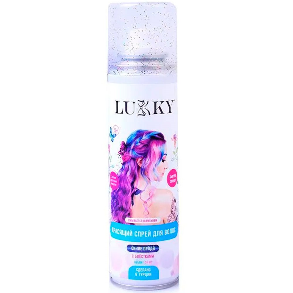 Спрей краска для волос в аэрозоли,для временного окрашивания,синий с блёстками,150 мл Lukky Т23415