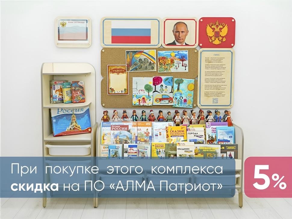При покупке среднего уголка патриотического воспитания вместе с Программным обеспечением «АЛМА Патриот», вы получаете скидку 5% на программное обеспечение.