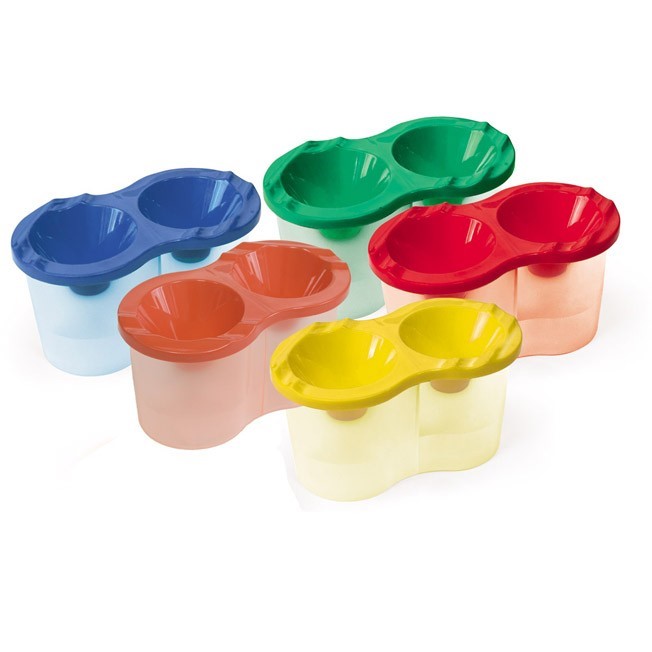 Удобный и практичный стакан-непроливайка имеет два отделения и яркую съемную крышку. Он не позволит воде вылиться при случайном опрокидывании. Вместительный стакан предназначен для работ с красками, эргономичная форма крышки позволяет удалить с кисти излишнюю воду. Специальная линия указывает на максимально возможный уровень наполнения водой. Два отделения предназначены для смывания краски и ополаскивания кисточки в чистой воде. Подходит как для домашнего использования, так и для детских садов, школ, изостудий. Стакан изготовлен из прочного нетоксичного полипропилен.