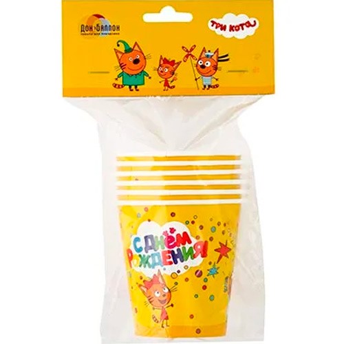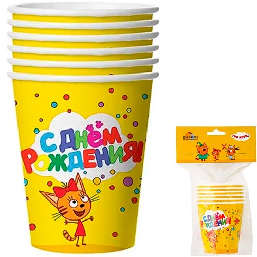Стакан С ДР Три Кота желтый 250 мл 6 шт. 1502-3722