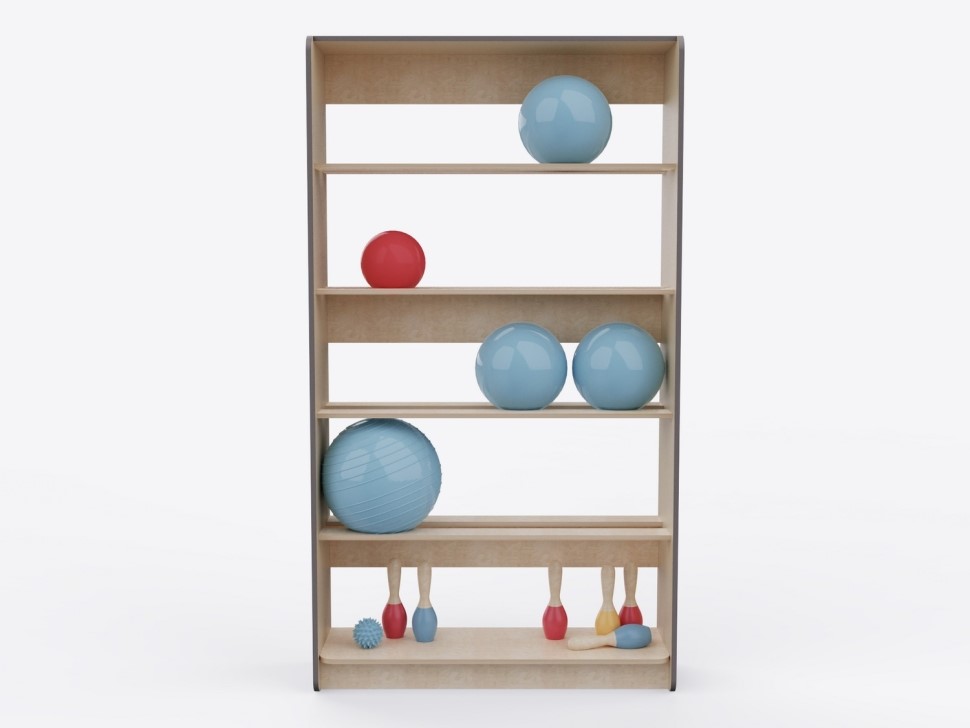 Стеллаж выполнен из высококачественных и прочных материалов, безопасных для использования детьми. Соответствует актуальным ГОСТам на детскую мебель и инвентарь для спортивных залов, требованиям СанПиН и пожарной безопасности, рекомендациям ФОП ДО по созданию развивающей среды для детей. Гладкие поверхности просты в уходе: достаточно влажной уборки для поддержания высокого уровня гигиены.