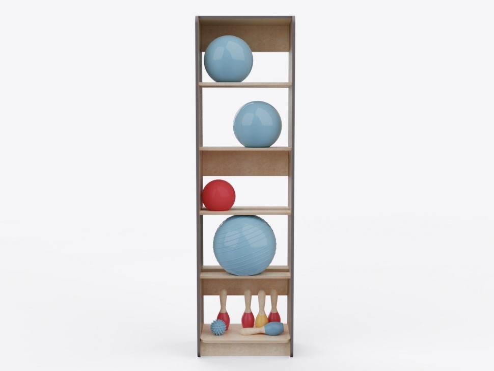 Стеллаж выполнен из высококачественных и прочных материалов, безопасных для использования детьми. Соответствует актуальным ГОСТам на детскую мебель и инвентарь для спортивных залов, требованиям СанПиН и пожарной безопасности, рекомендациям ФОП ДО по созданию развивающей среды для детей. Гладкие поверхности просты в уходе: достаточно влажной уборки для поддержания высокого уровня гигиены.