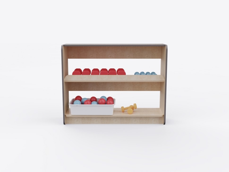 Стеллаж выполнен из высококачественных и прочных материалов, безопасных для использования детьми. Соответствует актуальным ГОСТам на детскую мебель и инвентарь для спортивных залов, требованиям СанПиН и пожарной безопасности, рекомендациям ФОП ДО по созданию развивающей среды для детей. Гладкие поверхности просты в уходе: достаточно влажной уборки для поддержания высокого уровня гигиены.