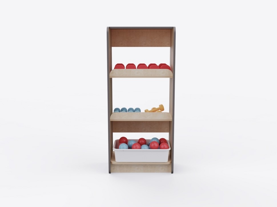 Стеллаж выполнен из высококачественных и прочных материалов, безопасных для использования детьми. Соответствует актуальным ГОСТам на детскую мебель и инвентарь для спортивных залов, требованиям СанПиН и пожарной безопасности, рекомендациям ФОП ДО по созданию развивающей среды для детей. Гладкие поверхности просты в уходе: достаточно влажной уборки для поддержания высокого уровня гигиены.