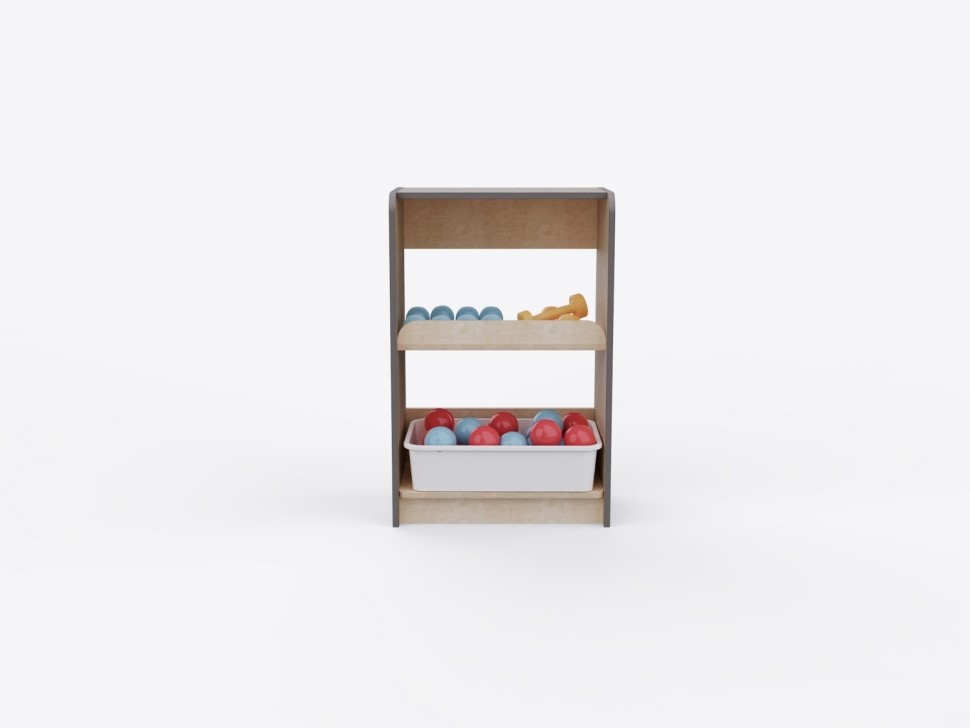 Стеллаж выполнен из высококачественных и прочных материалов, безопасных для использования детьми. Соответствует актуальным ГОСТам на детскую мебель и инвентарь для спортивных залов, требованиям СанПиН и пожарной безопасности, рекомендациям ФОП ДО по созданию развивающей среды для детей. Гладкие поверхности просты в уходе: достаточно влажной уборки для поддержания высокого уровня гигиены.