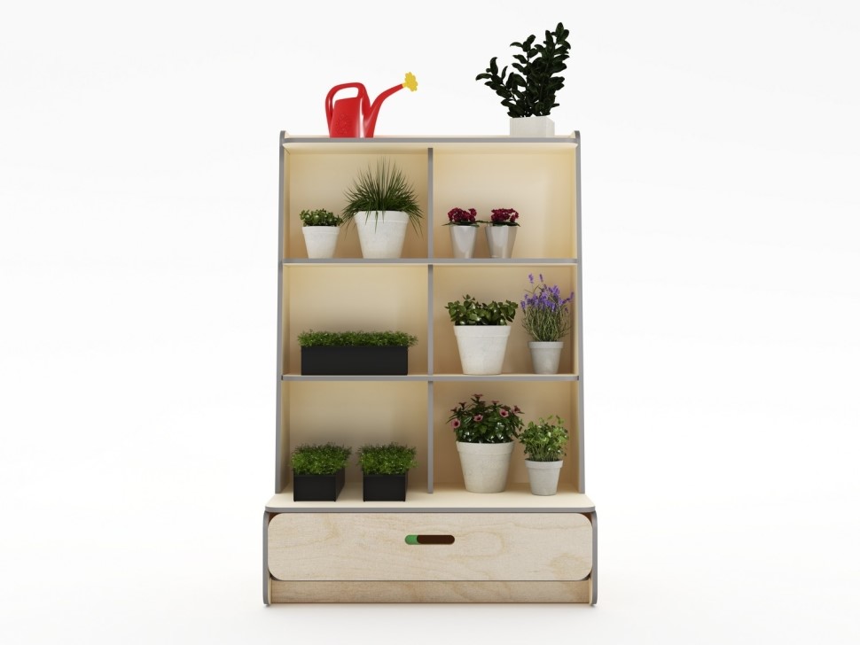 Функциональный стеллаж с ящиком и открытой системой хранения предназначен для оснащения учебных классов, кабинетов экологии и исследовательских кружков в детских садах, центрах дополнительного образования и других образовательных учреждениях