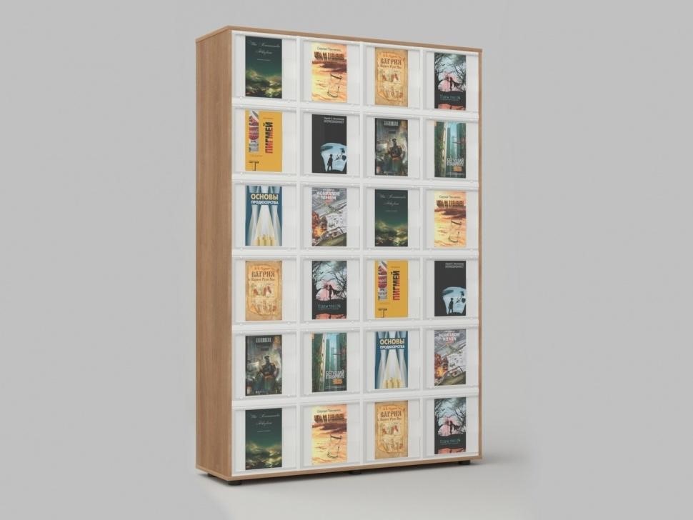 С лицевой стороны стеллажа расположены 24 прозрачных кармана, в которые удобно размещать журналы, афиши, объявления, постеры. Так читатели сразу видят новые номера и могут ознакомиться с содержанием. Сами печатные материалы хранятся внутри ящиков.
