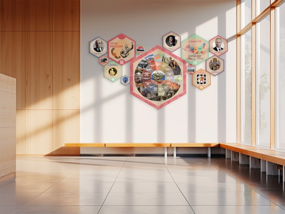 Описание и комплектация для прайсаОбразовательные панели для оформления стен школьных учреждений. Выполняют две функции: декор и соответствующее предмету обучение. Комплект состоит из набора гексагонов различного размера, которые можно комбинировать, исходя из вашего желания и