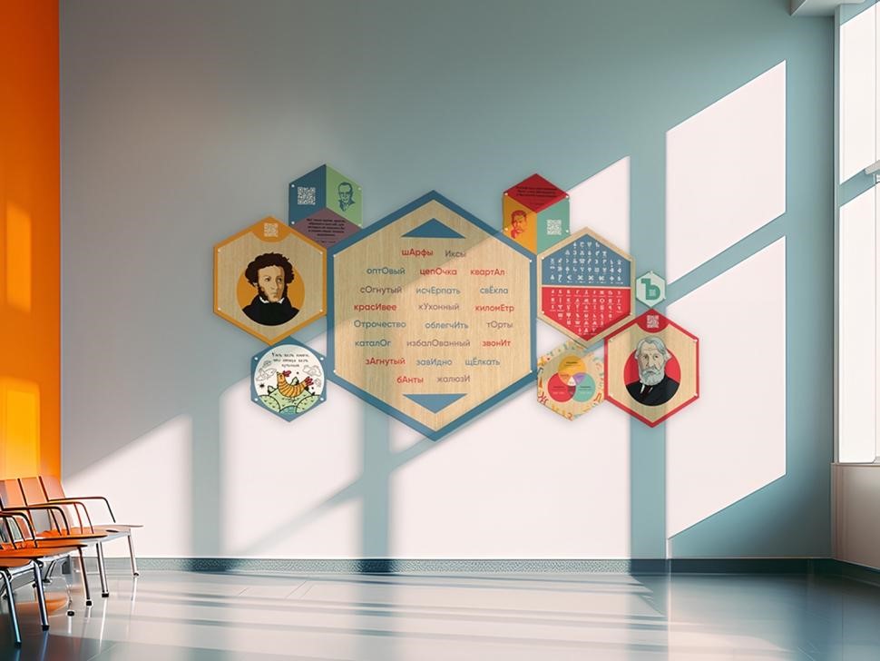 Образовательные панели для оформления стен школьных учреждений. Выполняют две функции: декор и соответствующее предмету обучение.