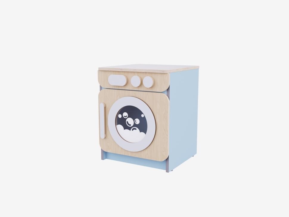 Натуральные материалы: Стиральная машина изготовлена из экологически чистой древесины, что гарантирует её долговечность и безопасность для здоровья детей.