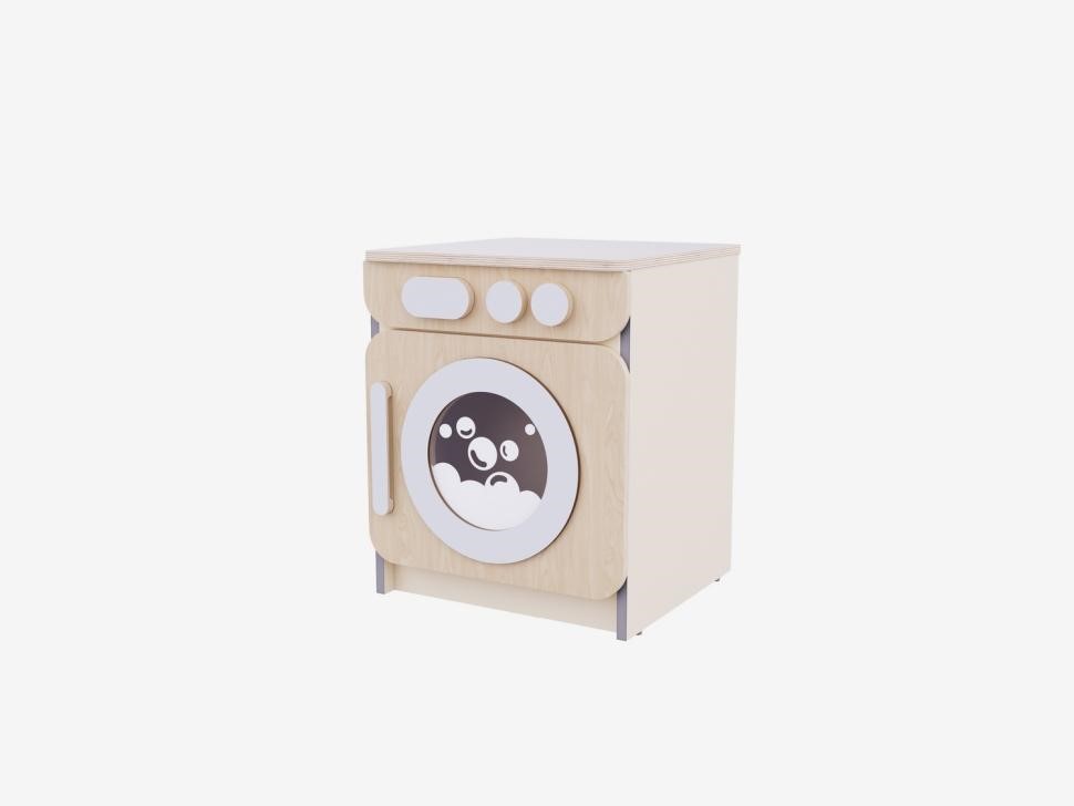 Натуральные материалы: Стиральная машина изготовлена из экологически чистой древесины, что гарантирует её долговечность и безопасность для здоровья детей.