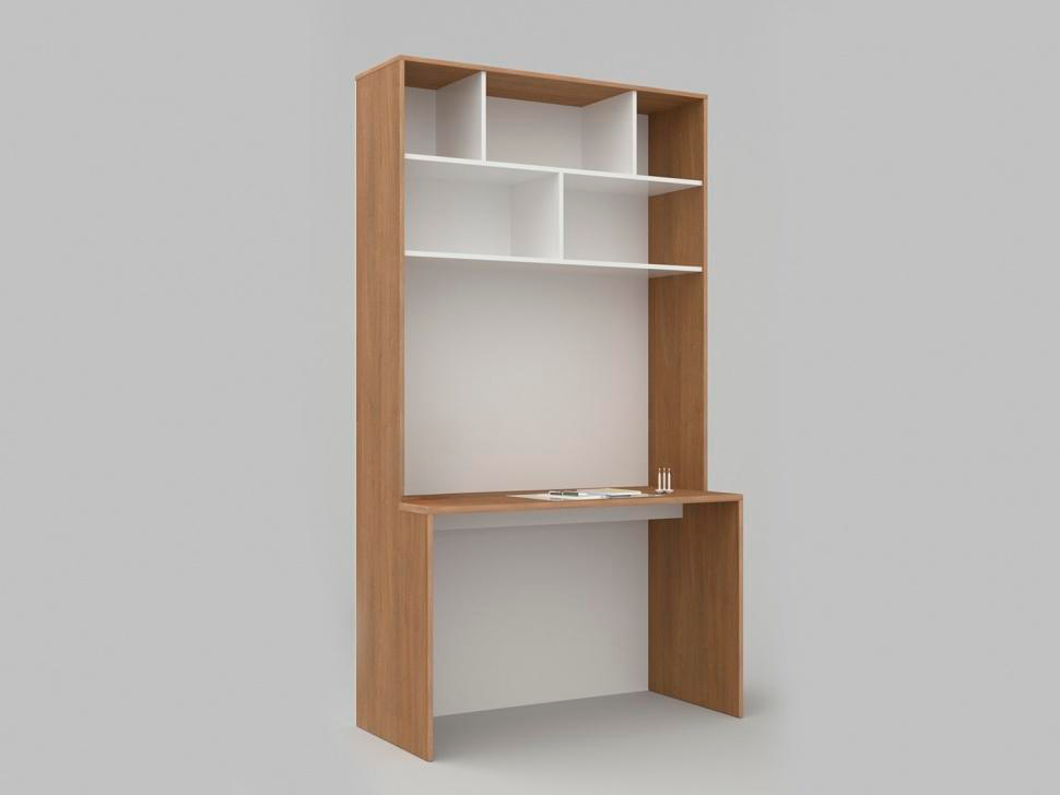 Две верхние полки с перегородками и пятью открытыми секциями подходят для систематизированного хранения книг, папок и документов.Широкая столешница обеспечивает достаточно места для работы с материалами.