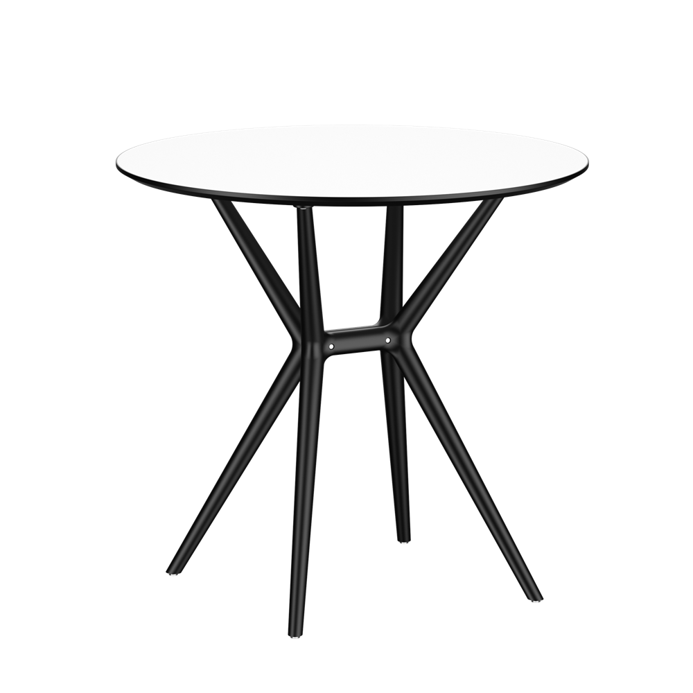 Стол установлен на подстолье TEORI — оригинальной формы пластиковое основание с четырьмя расходящимися опорами. Конструкция обеспечивает устойчивость даже при активном использовании, а материал ножек устойчив к влаге, легко моется и не боится бытовой химии. Это делает стол удобным не только для дома, но и для общественных пространств — кафе, столовых, переговорных зон.