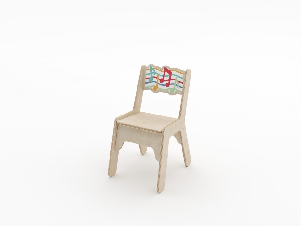 Стул изготовлен из экологически чистых материалов. Закругленные углы обеспечивают безопасность. На спинку стула нанесено изображение нотного стана, что делает его идеальным выбором для оснащения музыкальных и актовых залов и тематических классов детских образовательных учреждений. Рисунок нанесен с помощью УФ-печати и покрыт полиуретановым лаком Техноколор — это гарантирует долговечность и износостойкость покрытия.