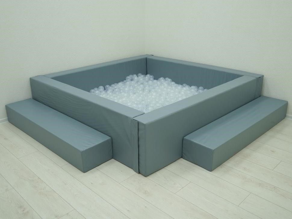 Мягкий квадратный манеж, наполненный прозрачными шариками. Предназначен для детских комнат в ДОУ, а также для оснащения сенсорных комнат и кабинетов детских психологов.