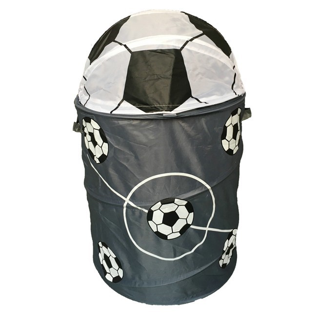 Удобная вместительная сумка для игрушек, выполненная в футбольной тематике, поможет превратить процесс приборки в веселую игру. Сумка изготовлена из нейлона, она легкая и достаточно прочная, а благодаря своему яркому дизайну легко впишется в интерьер детской комнаты. Изделие легко стирается и в собранном виде занимает совсем немного места, надежно помогает защитить содержимое от пыли.