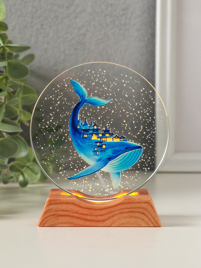 Сувенир стекло свет "Диск. Кит" 5хLED d=10 см, USB, цветной 10х4х11,4 см