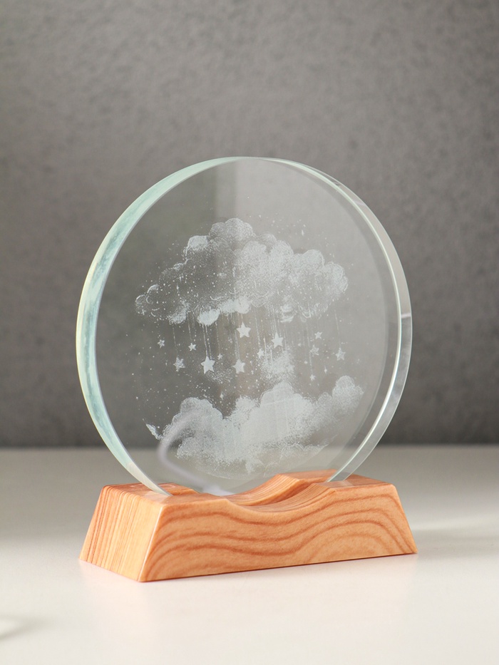 Сувенир стекло свет "Диск. Облако со звёздами" 5хLED d=10 см, USB 10х4х11,4 см