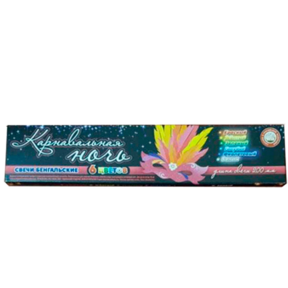 Свеча бенгальская Карнавальная ночь 200мм (6шт) красн,желт,зелен,голуб,бел, фиол 2019-0002