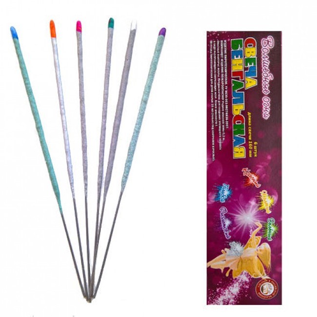 Свеча бенгальская Волшебные огни красн/желт/зелен/голуб/бел/фиол 6шт. 160мм 2018-0375