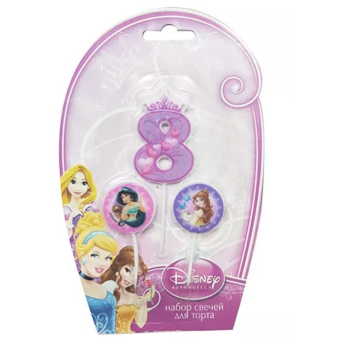 Свеча Дисней Принцессы цифра 8, медальоны 2шт 6029814