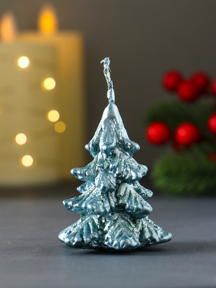 Свеча "Ёлочка " 70х50 мм, лак, голубая (комплект 2 шт)
