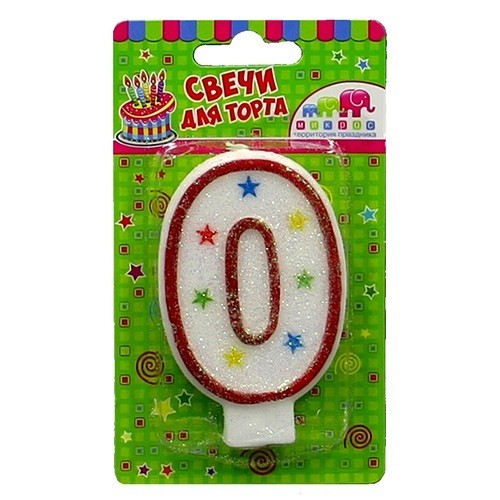Свеча цифра "0" с блестками Ч02496