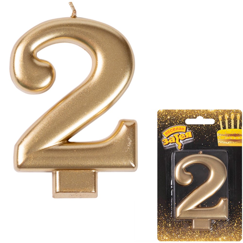 Свеча-цифра "2" Золотая 8 см 1502-2835