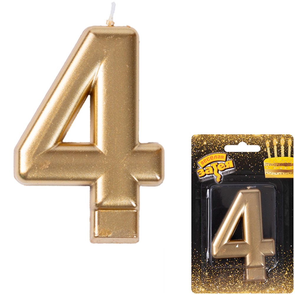 Свеча-цифра "4" Золотая 8 см 1502-2837