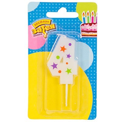 Свеча цифра "4" Звезды 5см 1502-4228