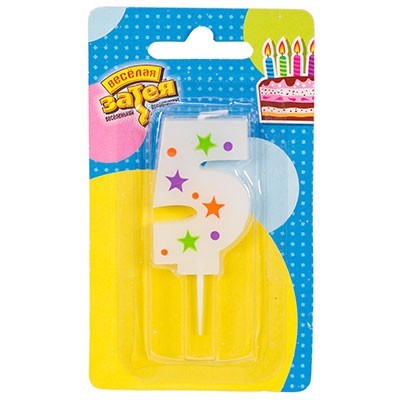 Свеча цифра "5" Звезды 5см 1502-4229