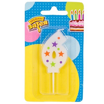 Свеча цифра "6" Звезды 5см 1502-4230