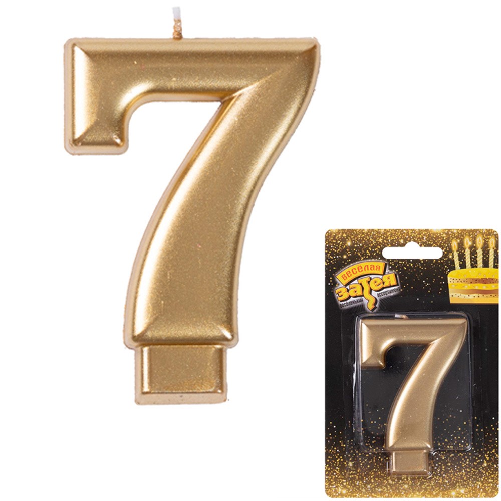 Свеча-цифра "7" Золотая 8 см 1502-2840