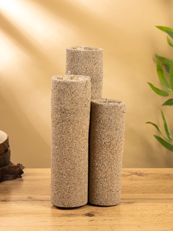 Свеча в бамбуке тройная, 15×15×30 см, 100 мл, песочная