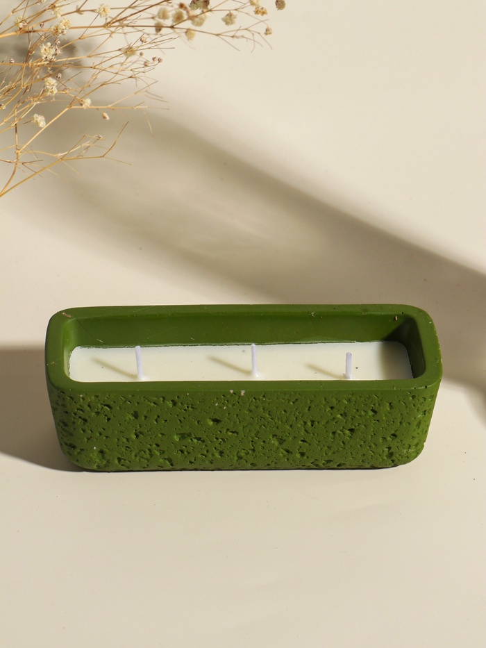 Свеча в подсвечнике «Ящик», 3 хлопковых фитиля, зелёная 5.2×15×4.7 см