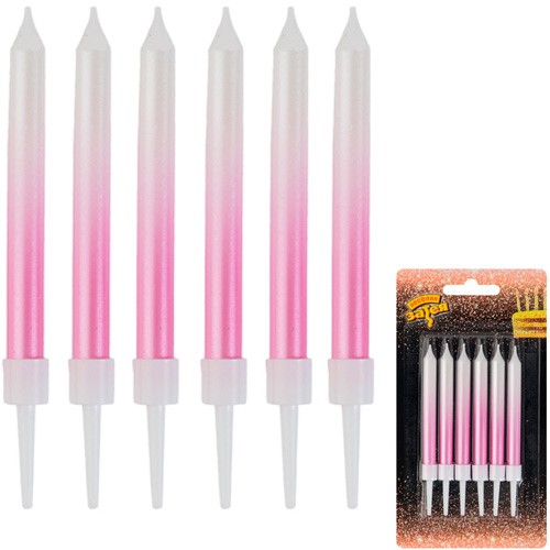Свечи для торта Градиент бел/розов перлам 8см 6шт