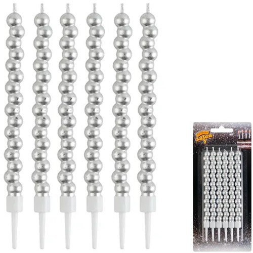 Свечи для торта Пузыри серебро 12см 6шт