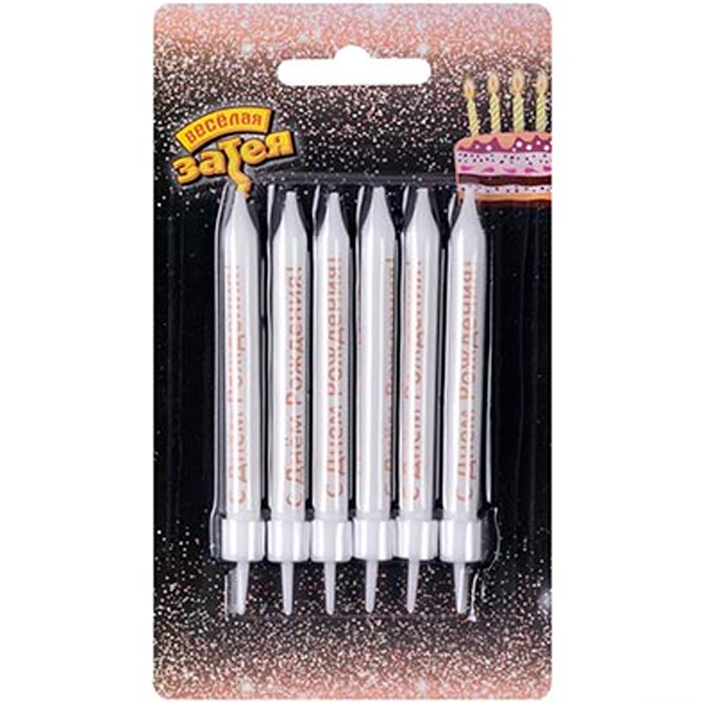 Свечи для торта с подст. С ДР бел/роз зол 6 см 8 шт 1502-6497